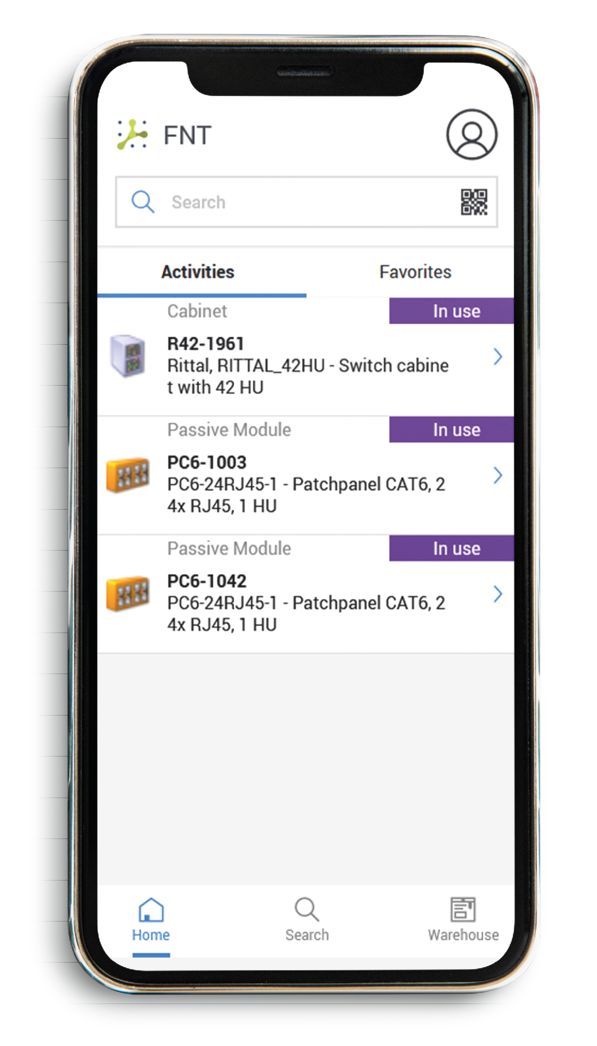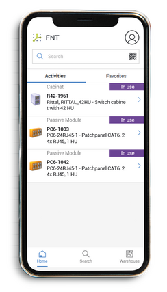 With the help of the integrated scanning functionality, objects documented in FNT Command can be easily located using a smartphone or tablet camera. Various code types are supported, such as QR codes from hardware or manufacturer codes. In addition, a search function is also available via text input. Frequently used objects can be conveniently saved as favorites.