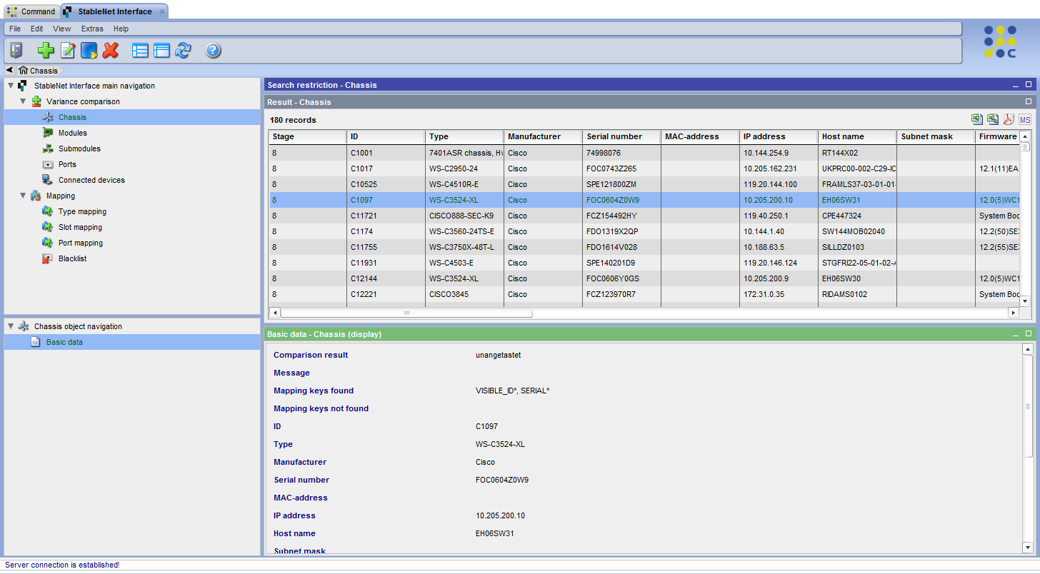 - Automated target/actual comparison of the components documented in FNT Command with the devices detected by StableNet as the input for an automated change management workflow