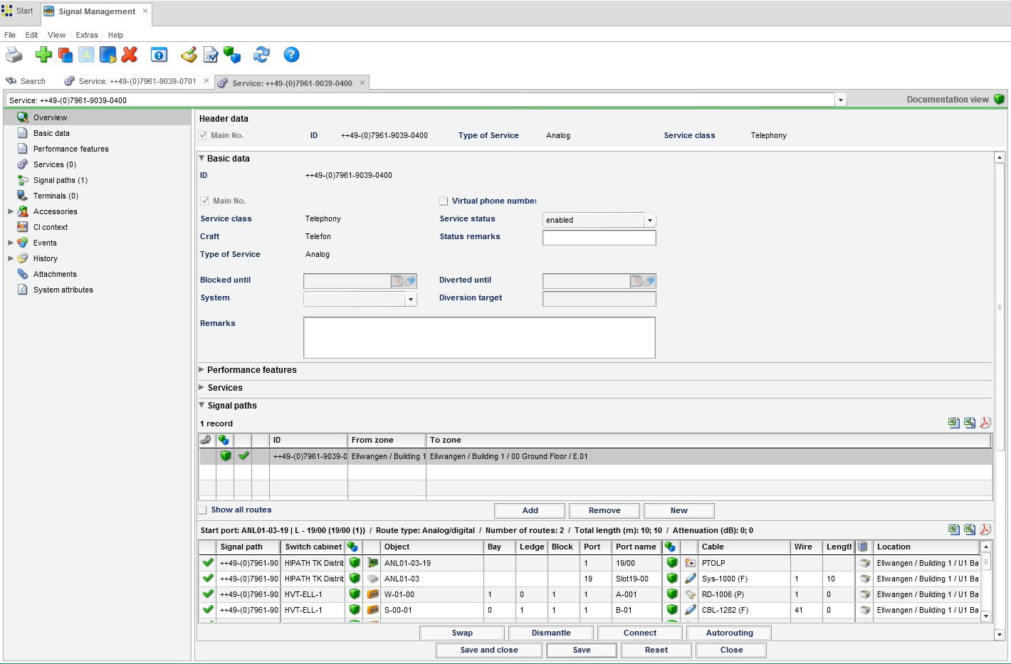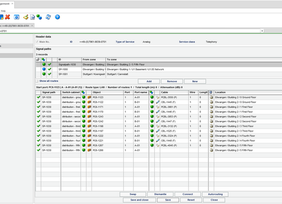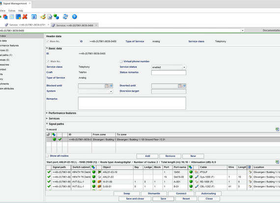 - Documentation of single and redundant signal paths to ensure minimum downtime and enable detailed planning of network expansion