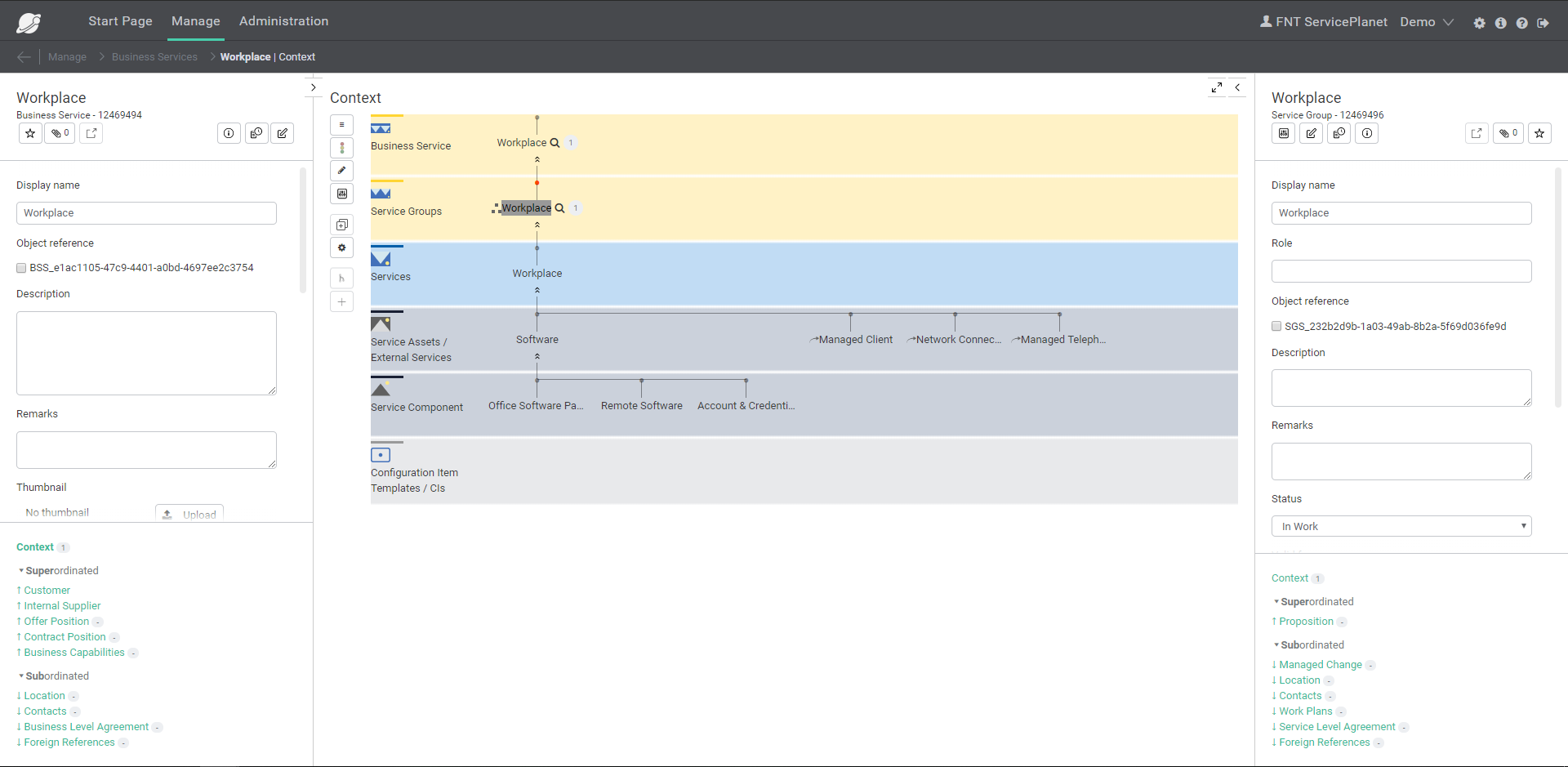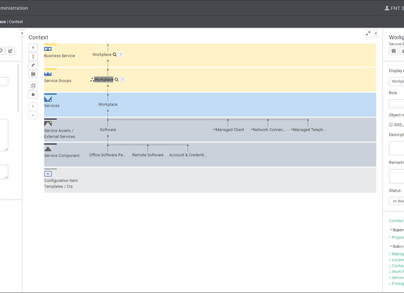 FNT ServicePlanet is the control center for product portfolio and service management, providing the foundation for defining, managing, and monitoring all your business services and service assets over the entire service lifecycle. Standardizing products and their components in FNT ServicePlanet allows all product and service-related information to be combined in a central database.