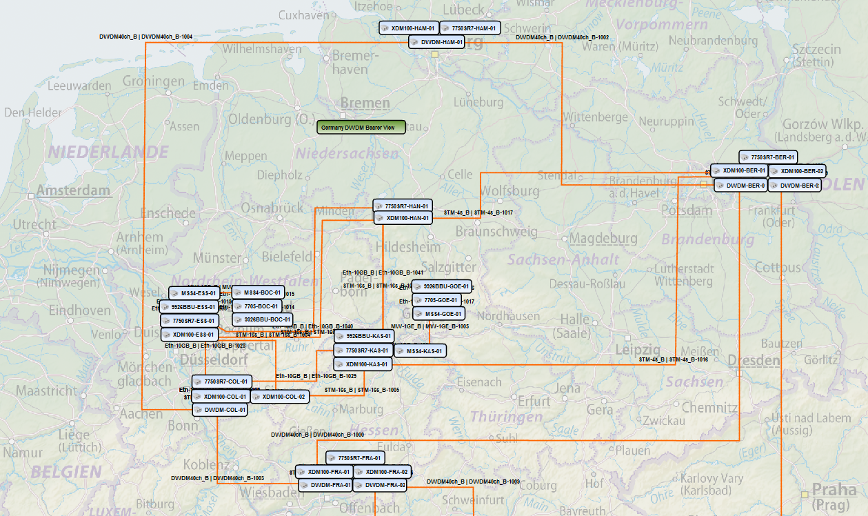This single source of truth database enables end-to-end querying of relationships between services, their underlying physical and logical network resources, associated applications, customers, and other assigned information. It provides transparent and clearly structured documentation, the ability to manage connections and services throughout the entire network, and an integrated data model for seamless navigation between layers. This makes it easy to identify all services and customers affected by any changes or issues, anywhere in the network.