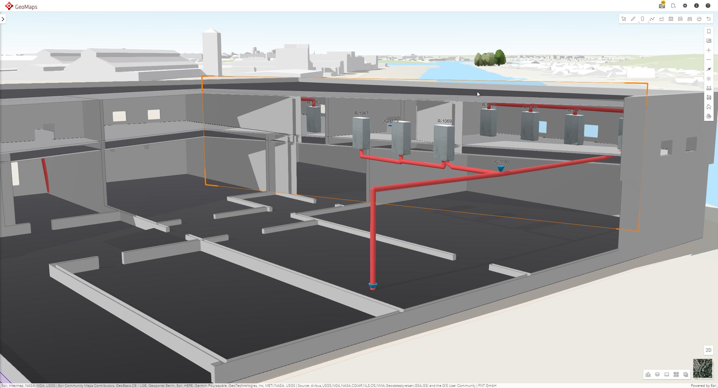 FNT GeoMaps also applies network infrastructure data to building representations.